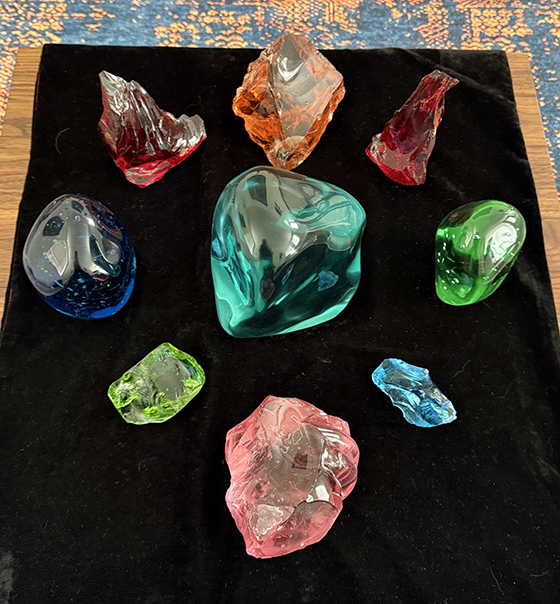 The rich, deep colors of the stones and the unique designs of the sacred tools used in my practice convey beauty and radiance that magnifies the positive energy of the healing space. The careful placement of these objects, often arranged to form mini-altars, gives an additional boost to their uplifting effect.