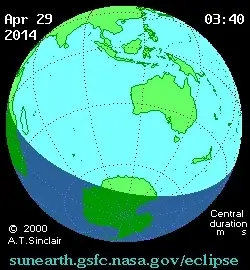 The event will be visible as a partial eclipse from these locations: South Asia, Australia, Pacific Ocean, Indian Ocean, and Antarctica.