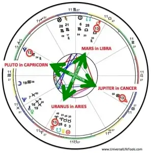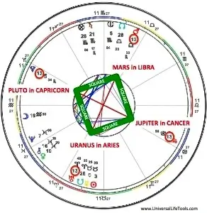Each of these planets will be situated at 13 degrees within the 4 Cardinal signs of the zodiac, which makes this phenomenon a Cardinal Grand Cross Alignment. Pluto will be at 13 degrees Capricorn, Jupiter at 13 degrees Cancer, Mars at 13 degrees Libra, and Uranus at 13 degrees Aries. In addition, Mars is in Retrograde during this unique configuration.